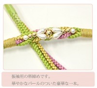 新品振袖 > 振袖用小物 > 新品振袖用帯締め・帯揚げ > 帯締め 振袖用 礼装用 成人式 パール 丸組 ビジュー 華やか 結婚式 振袖 花嫁 礼装 金 正絹 ふり・・・く 12 黄緑 sin4692-kim 【追】 着物 通販