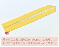 華やかな黄色の地に、金色そして白いパールがぎっしりと並んだ美しい一品です。