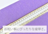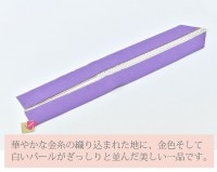 華やかな金糸の織り込まれた紫色の地に、金色そして白いパールがぎっしりと並んだ美しい一品です。
