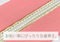 華やかな金糸の織り込まれたピンク色の地に、金色そして白いパールがぎっしりと並んだ美しい一品です。