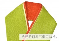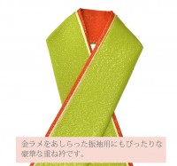 \SALE 2/6 12時〜★10%OFF/重ね衿 振袖 三重袷せ リバーシブル 華小町 成人式 結婚式 卒業式 花嫁 黄緑 オレンジ 金 11 sin5664-kimb15 着物 通販