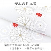 トップ > 女性用袴 > 新品袴用重ね衿・半衿 > 半襟 刺繍 振袖用 半衿 成人式 シルドール 千草織 刺繍半衿 和装小物 白 赤 亀甲花 菊 sin6183-kbob12 着物 通販