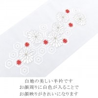 こちらの半衿は白色に亀甲花 菊の文様が華やかでかわいい刺繍が施されており、どんなお着物にも似合う半衿となっております。