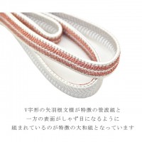 2.V字形の矢羽根文様が特徴の笹波組と、一方の表面がしゃず目になるように組まれているのが特徴の大和組となっています