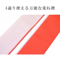 重ね衿 ラミエール 綸子 ペアカラー 着物 和装 お洒落小物 伊達衿 洗える ポリエステル 4通り使える No.2 唐紅 薄ピンク sin7571-bob09 着物 通販