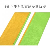 重ね衿 ラミエール 綸子 ペアカラー 着物 和装 お洒落小物 伊達衿 洗える ポリエステル 4通り使える No.19 柳緑 雄黄 sin7588-bob09 着物 通販