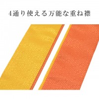 重ね衿 ラミエール 綸子 ペアカラー 着物 和装 お洒落小物 伊達衿 洗える ポリエステル 4通り使える No.28 紅柑子 雄黄 sin7597-bob09 着物 通販