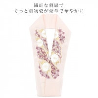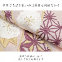 ニュアンスカラーのピンク色地にとても華やかで繊細な刺繍が晴れの装いを一層豪華に彩ってくれます。