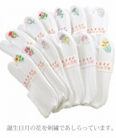 足袋 白 刺繍 ストレッチ 誕生日花 足袋ソックス プレゼントに最適 母の日 和装小物 日本製 sin4086-kim 【追】 着物 通販