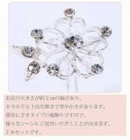 振袖にはもちろん、浴衣や和装の姿に、結婚式へ洋装でのヘアアップのちょっとした飾りにお勧めです。お花の大きさが約2の幅があり、キラキラと上品な輝きで華やかさがあります。簡単にさすタイプの髪飾りですので、様々なシーンにご使用いただくことが出来ます。2本セットです。