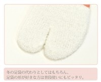 ふわふわと柔らかくて暖かい足袋型のソックスです。冬の足袋の代わりとしてはもちろん、足袋の形が好きな方は普段使いにもピッタリ。安心の日本製です。お家で洗えます。