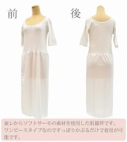 東レからソフトサーモの素材を使用した肌襦袢です。ワンピースタイプなのですっぽりかぶるだけで着用が可