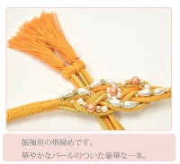 \ご愛顧感謝SALE★15%OFF/帯締め 振袖用 礼装用 成人式 パール 丸組 ビジュー 華やか 結婚式 振袖 花嫁 礼装 金 正絹 ふり・・・く 10 オレンジ sin4710-kim 【追】 着物 通販