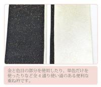 金と色目の部分を使用したり、単色だけを使ったりなど全4通り使い道のある便利な重ね衿です。