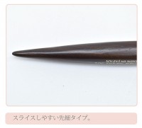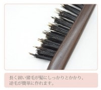 長く固い猪毛が髪にしっかりとかかり、逆毛が簡単に作れます。スライスしやすい先細タイプ。