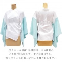 長襦袢 > 新品仕立て上がり長襦袢 > 半襦袢 > \ご愛顧感謝SALE★15%OFF/肌着 着物 下着 肌襦袢 半襦袢 ラミエール ちりめん バチ衿 立体裁断 日本製 舞踊 踊り 踊り用 和装 長襦袢 水色 sin6516-bob18 着物 通販