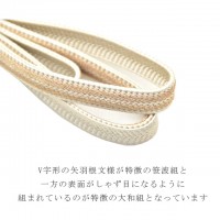 2.V字形の矢羽根文様が特徴の笹波組と、一方の表面がしゃず目になるように組まれているのが特徴の大和組となっています
