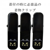 【SALE】1/13 15時〜\10%OFF/着物 クリップ 着付け 道具 大 日本製 和装 衿元クリップ 黒 猫 ネコ 無地 カーブ付き 3個入り sin6809-kbob08 着物 通販