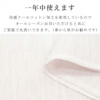 冷感クールコットン加工を使用しているので、オールシーズンお召いただけると共に、ご家庭で丸洗いできます。