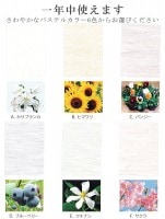 ▼ 下記商品リストからご希望の商品をお選びください。 選択 x 色 | Aカサブランカ 白 | Bひまわり 黄色 | Cパンジー ピンク紫 | Dブルーベリー 紫 | Eくちなし 青 | F桜 ピンク |