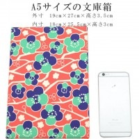 A5サイズの文庫箱です。帯締め帯揚げの収納としても温かみのある和柄の丈夫な帆布の文庫箱です。