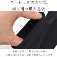 ストレッチのきいた、婦人用の単衣足袋です。無地タイプなので男性にもお使いいただけます。