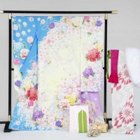 新品振袖 > 新品振袖セット > 【SALE】1/13 15時〜\10%OFF/振袖 帯 長襦袢 帯締め 帯揚げ 重ね衿 ショール 草履バッグ 8点セット フルセット 花文様 仕立て上がり sin8977-kimb400 着物 通販