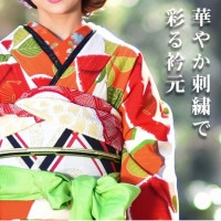 顔に近い衿部分に刺繍半衿をつけることによって全体的に更に明るくなり艶やかに纏うことができます。
