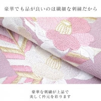 明るい紫色のニュアンスカラー色地にとても華やかで繊細な刺繍が晴れの装いを一層豪華に彩ってくれます。
