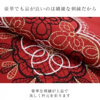 赤色地にとても華やかで繊細な刺繍が晴れの装いを一層豪華に彩ってくれます。